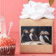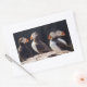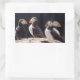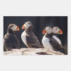 Photograph of 4 puffins looking in opposite directions on rocks at Farne islands, Northumberland.