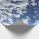 A bank of puffy white clouds breaks into small wispy pieces across the frame of the vertical photograph. The cloud cover is denser on the left and more sparse on the right, revealing a deep blue sky that is dark near the top of the photo and lighter near the bottom. Late afternoon sun highlights the right edges of the cumuli. It looks like torn apart cotton balls suspended in air.