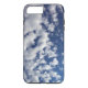 Safeguard your iPhone 8 Plus/7 Plus from shocks with an impact resistant Case-Mate Tough case featuring dreamy puffy white clouds breaking into small wispy pieces across the frame of the vertical photograph. The cloud cover is denser on the left and more sparse on the right, revealing a deep blue sky that is dark near the top of the case and lighter near the bottom.