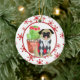 Pug and Cactus Red Snowflake Template Ceramic Ornament