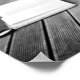 Handsome pug dog lost in thought, taking a break on a black beanbag chair. The dog is fawn coloured and the remainder of the photograph is black and white.