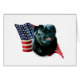 USA! America! Shout your pride with this awesome flag Patriotic background with this AKC dog breed Pug in the forefront. Show your pride with this design on a t-shirt, mug, and much, much more!