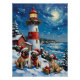 Bring charming, squish-faced charm to your holiday season with this adorable Pug Christmas design! This magical scene features three cute, wrinkled-faced Pugs sitting contentedly at the base of a tall red-and-white lighthouse, which stands majestically on a snowy coastal cliff. The lighthouse is beautifully adorned with glowing Christmas lights and fragrant garlands. The dogs wear festive Santa hats and cozy scarves, surrounded by colorful wrapped gifts and cheerful holly branches. The ocean waves sparkle in the moonlight while soft snowflakes drift gently in the air, creating a truly magical winter holiday atmosphere. This design is a perfect Christmas gift for any Pug owner, dog lover, or admirer of festive and beloved companion dog art, capturing the serene joy of the season.