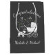 These two personalised and stylish glossy gift bags were simply ideal to carry wedding gifts wrapped in the matching gift wrapping paper. The customised text printed on the gift bags was precisely as ordered and while the photo does not quite do the gift bags justice, rest assured they look fabulous. The gift bags were securely packaged for safe transit arriving undamaged and it was a speedy turnaround from ordering to delivery. Thank you Zazzle for another 5-star transaction in every way!