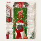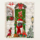Pug Dog Christmas sitting outside decorated home with Christmas wreath, Christmas tree is a perfect Christmas gift idea for dog lovers.