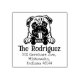 This "Pug" rubber stamp features a dog with a custom name and address.