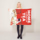Cosy fleece throw blanket with a dog image. Text reads "Home is where the Tea is."