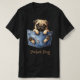 A pug dog in a pocket, the cutest thing. The name of the breed is on the front of the t-shirt, however I added the image to the back with no text which makes it look like its in a pocket.