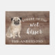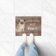 Funny beware of the wet kisser" Pug Dog door mat set on a rustic faux background. Visit our shop to view a large assortment of dog breads