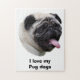 A beautiful cute fun pug dog portrait photo, for animal and pet lovers and dog owners, easily change the background colour from over 200 customisable colours, and personalise with your own text, for your dog, or kennel. You can even change the photograph for one of your own pooch.