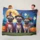 Pug Dog Pumpkin Halloween Funny Fleece Blanket