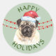 Pug Dog Santa Hat Happy Holidays Classic Round Sticker