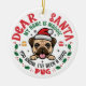 Pug Dog Santa Personalised Christmas Tree Round Ceramic Ornament