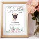 The lovely Pug dog signature drink sign features a beautiful floral pet design in watercolor style- perfect for a wedding saturated in neutral tones. It is an attractive way to accent your event's cocktail, food, or dessert table! Personalise the wedding bar sign with the pet's name and drink details.