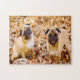 Pug Dogs. Jigsaws of Dogs, These Jigsaws are made of sturdy cardboard and mounted on chipboard, these puzzles are printed in vivid and full colour. For hours of puzzle enjoyment, give a custom puzzle as a gift today! Size from: 11" x 14" (252 pieces) Up to: Super Size:20" x 30" (1014pieces) Includes beautiful gift box with puzzle image printed on lid. Sturdy cardboard stock, mounted on chipboard. Easy wipe-clean surface.