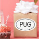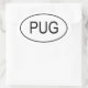 Design features a Euro type sticker with the word PUG in it in black capital letters. Excellent gift for pug lovers.