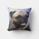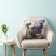 Fawn coloured pug face over a blue hued painting like background dog lovers throw pillow
