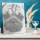A cute pug face with carved effect applied to design. Lines of different width creating the image.