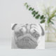 A cute pug face with carved effect applied to design. Custom postcards. Lines of different width creating the image. Gift idea for people that love pugs.