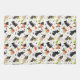 Cute pugs in Halloween costumes and trick-or-treating with paw prints, bats and dog bones on white background.