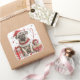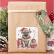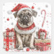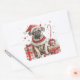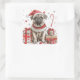 This festive sticker showcases an adorable Pug dressed in a cheerful elf costume, sitting beside a large candy cane and a stack of wrapped gifts. Scattered snowflakes and tiny ornaments add to the joyful holiday scene. The design is clean and isolated, making it perfect for spreading holiday cheer on any surface!