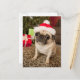 Pug in Santa Claus Hat sitting on carpet Holiday Postcard