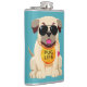 The flask itself is fine. It’s a cheap flask, obviously bought in bulk, however am prepared to overlook that. Given that it is a personalized item, I would have liked to have seen gift boxing instead of the generic packaging. Terrible printing, and/or quality. It’s a cheap, tacky vinyl. It is not cut straight and is also applied in a way that it is overhanging the bottom, causing the glue to catch on items and it will eventually roll and tear, damaging the wrap.