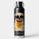 The bottle looks even better in real life. The ice cubes I put in lasts all day! I have my bottle with me all the time. It's summer and having something cold to drink feels amazing. With this bottle I always have something super cold. I have only tried the hot drink once and it lasted a long time as well. The color blue is a navy blue and the white printed on it is vibrant. It printed perfectly. I love my personalized smile water bottle.