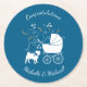 Pug Party Blue Theme Celebration Round Paper Coaster