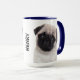 Personalised mug for your Pug. Customise with your dog’s picture and name; fonts and colours can also be changed.