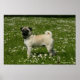 Pug Playing in Flowers Poster