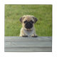 Adorable portrait photograph of a pup puppy peeping over a picnic table.