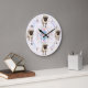 Very unique clock, large size, with four adorable pugs at the 12, 3, 6 and 9 o'clock settings. I added the name of the dog plus the family last name to personalize and make it a lasting keepsake. You will never find a clock of this quality and customization anywhere in the bricks and mortar stores!! The print is perfect in size and color, just as requested. Can't wait to see the recipient's face when they see this precious clock with their precious breed and name attached.!!