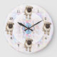Pug Puppy Bright Lights Background Large Clock