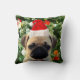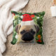 Pug Puppy Dog Christmas Tree Ornaments Snowman Pillow. Cute Pug Puppy Dog with Christmas Tree Ornaments Snow Man in background.