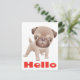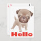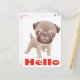 Brighten someone's day with handwritten note! This fun hello canine postcard features a cartoon image of a Pug puppy dog highlighted against a creamy white background.