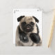 Brighten someone's day with handwritten note! This fun canine postcard features an image of a Pug puppy dog wearing headphones highlighted against a creamy white background.