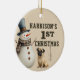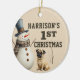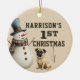A adorable watercolor pug puppy and snowman makes these custom first Christmas ornaments a heart warming keepsake gift. Easily customise to make a special gift this Christmas.