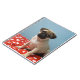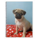 Pug puppy sitting on bed notebook