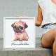 Pug Puppy With Pink Bow Illustration Custom Name Poster