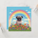 A personalised Pug memorial sympathy card with a beautiful painting of a Pug on a heavenly hill with a beautiful rainbow overhead. Symbolising the Pug dog has passed the rainbow bridge to doggy heaven. You can personalise it with your own Pug dog's name or any other text on the back side of the card. Makes a special memorial or sympathy gift for any Pug dog lover if their dear dog has passed.