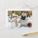 Pug Sitting Next to Snowman in Winter Postcard