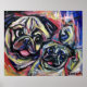 smiling pugs in an abstract design~bold, & expressive!