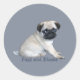 Pugs are recognised for their even-tempers, playful personalities, and their outgoing, loving dispositions. The Pug’s reason for living is to be near their people and to please them, and their sturdiness makes them a family favourite. Pugs are the companion dog par excellence; they have a great sense of humour and adore children. Pugs make peculiar sounds much like human babies; snoring, snorting and grunting. Pugs are curious by nature and will follow you around the house to see what you are doing. They are comfortable in small apartments because they need minimal exercise, but the breed can adapt easily to all situations. The Pug sheds, but its short coat requires little grooming. This square and cobby breed comes in fawn, silver fawn, apricot fawn or black, with a well-defined "mask" on his muzzle. A popular companion dog, the pug also excels in the show ring. This is a perfect gift for you or any Pug lover that you know.