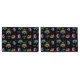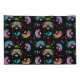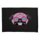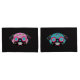 Pug Sugar Skulls Pillowcase Set has a pink pug sugar skull on one and blue pug sugar skull on the other both. Both have a multi-colour pug sugar skull pattern on the back. Black background.