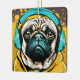 Pug wearing headphones ceramic ornament