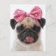 Pug with Pink Bow Postcard