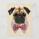Pug with Red and White Spotty Bow Tie Postcard