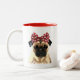 Pug with Red Spotty Bow On Head 2 Two-Tone Coffee Mug