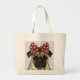 Pug with Red Spotty Bow On Head Large Tote Bag